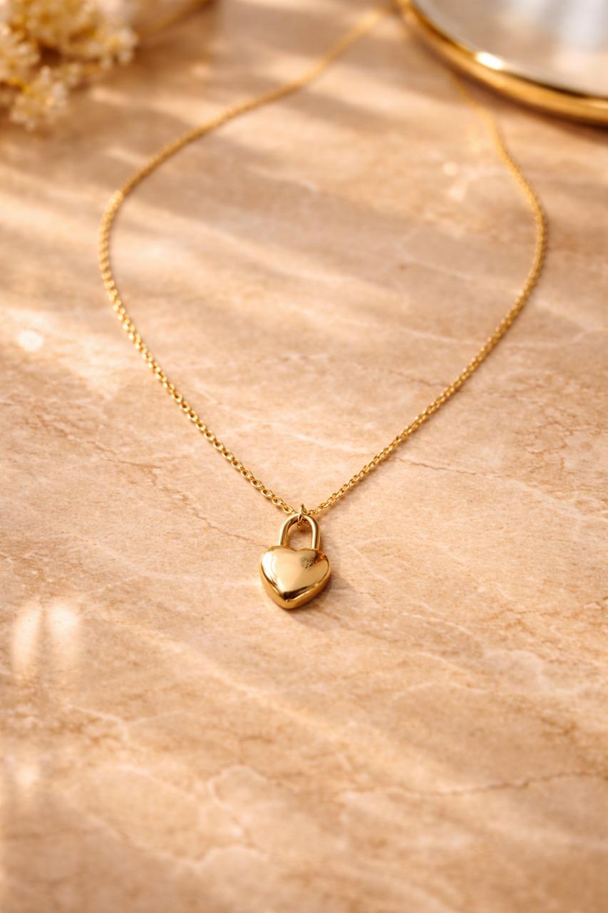 Golden Heart Lock Pendant Necklace